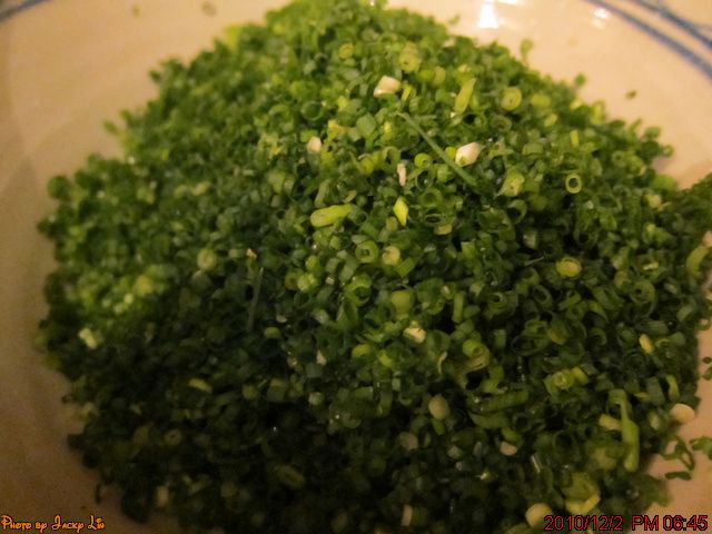 這時老闆在準備萬能蔥做佐料